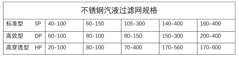 不銹鋼汽液過濾網(wǎng)HG/T21618-1998絲網(wǎng)除沫器用氣液過濾網(wǎng)規(guī)格有:SP、DP、HR、HP型四種標(biāo)準(zhǔn)規(guī)格。絲網(wǎng)除沫器用氣液過濾網(wǎng)規(guī)格有:HG5-1404、HG5-1405、HG5-1406、標(biāo)準(zhǔn)號(hào)為滬Q/SG12-1-79。標(biāo)準(zhǔn)中規(guī)定了氣液網(wǎng)的三種型式,即標(biāo)準(zhǔn)型、高效型和高穿透型。對(duì)于用戶提供的各種非標(biāo)編織網(wǎng),如多股合編、各種形狀的密封墊、套管等,我們可根據(jù)網(wǎng)孔大小和絲徑粗細(xì)定制。