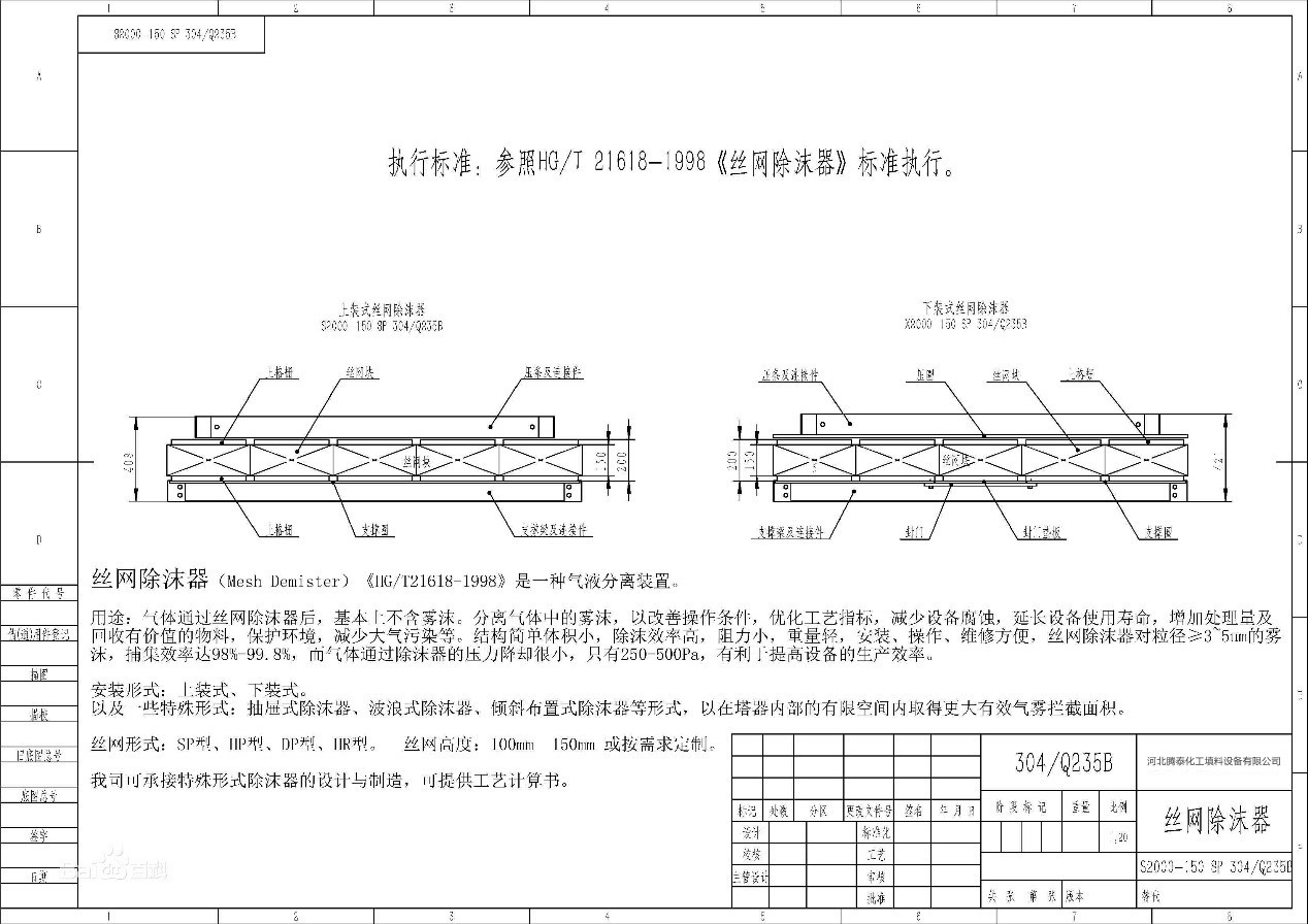 不銹鋼絲網(wǎng)除沫器、金屬絲網(wǎng)除沫器、塑料絲網(wǎng)除沫器、pp絲網(wǎng)除沫器、抽屜式絲網(wǎng)除沫器、鑲嵌式絲網(wǎng)除沫器、上裝式絲網(wǎng)除沫器、下裝式絲網(wǎng)除沫器 等